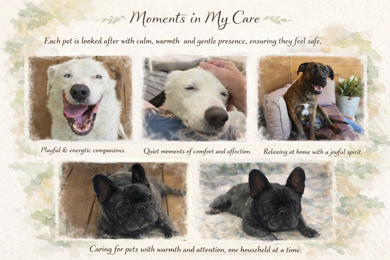 A gentle glimpse into the calm, attentive care I provide, where each pet is met with patience, warmth and quiet companionship.
